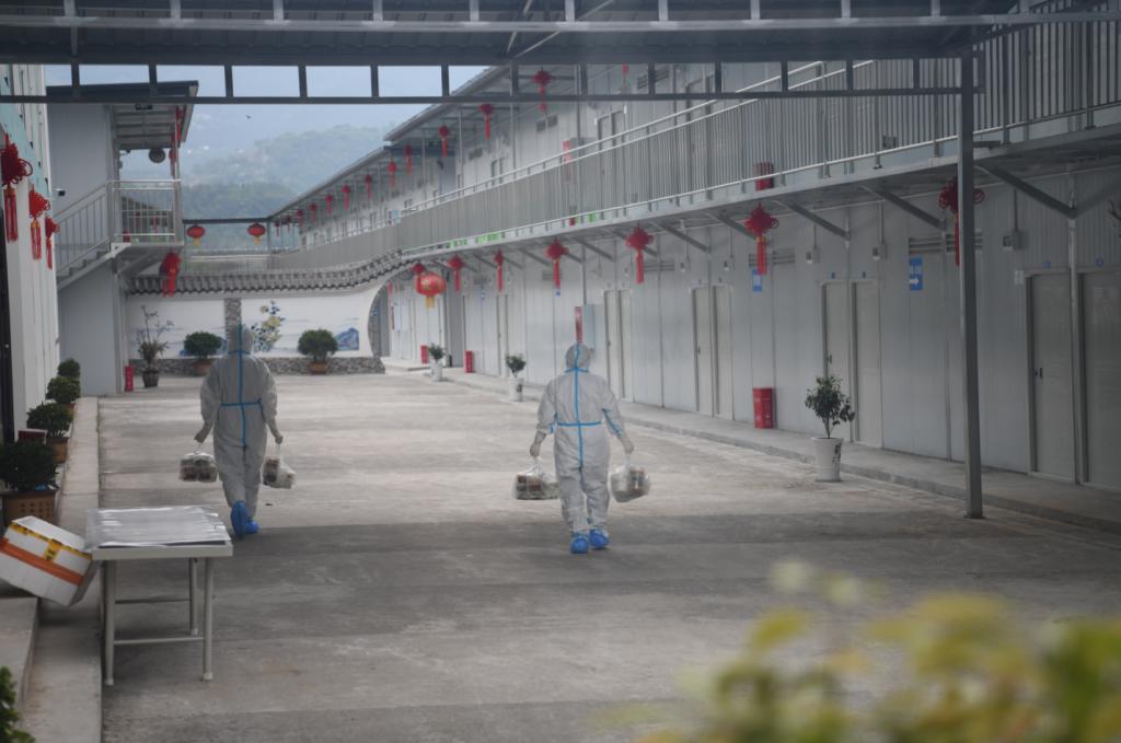 据了解,中子集中隔离点分为三区两通道,三区即工作准备区、医学观察区、生活区;两通道是隔离人员通道和工作人员通道。隔离人员到达隔离点时,由医院负压救护车闭环转运隔离人员,到达隔离人员通道以后,由隔离点消杀人员对闭环救护车、隔离人员进行消毒,隔离人员下车以后,进行扫码、测温、验行程卡,再由消杀人员引领隔离人员进入房间。