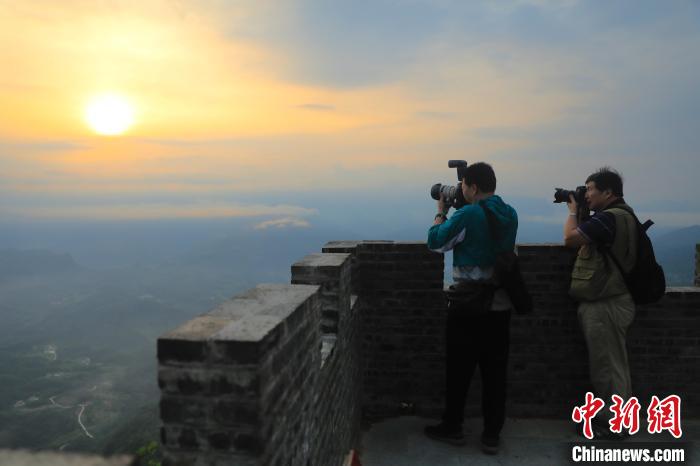 国际知名摄影师在龙神阁拍摄日出云海。 王磊 摄