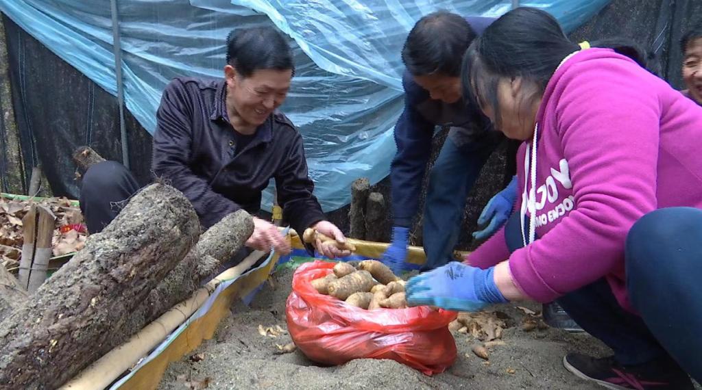 在水磨沟镇红坪村天麻种植基地里,天麻种植大户谢廷国正在和前来务工的村民一起在大棚里,采收天麻。水磨沟社区居民王秀华告诉记者,自从天麻产业在本地发展起来,她一般忙完自家的农活后,便会到天麻种植基地做点管护、采挖的活儿。