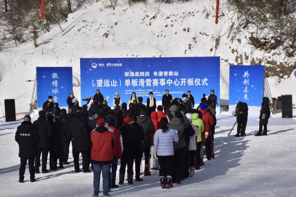 开板仪式上,广元曾家山滑雪场有限公司董事长黄地介绍了(望远山)单板滑雪赛事中心建设情况;单板滑雪运动员、北京冬奥宣讲团成员张阳光子谈(望远山)单板滑雪赛事中心试滑体验。