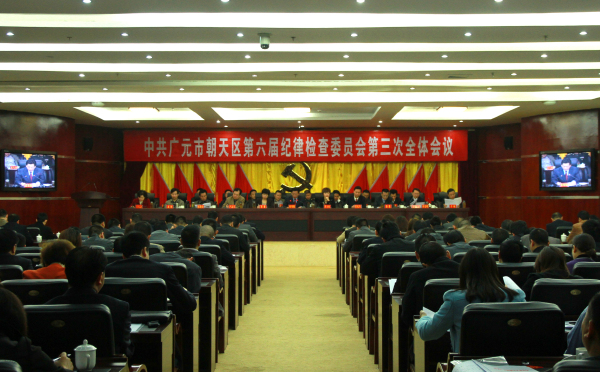本网讯(谢翀)3月19日上午,中共广元市朝天区第六届纪律检查委员会第三次全体会议召开。会议的主要任务是:传达贯彻十八届中央纪委二次全会、省纪委十届二次全会和市纪委六届三次全会精神,回顾总结过去一年工作,研究部署2013年工作。
