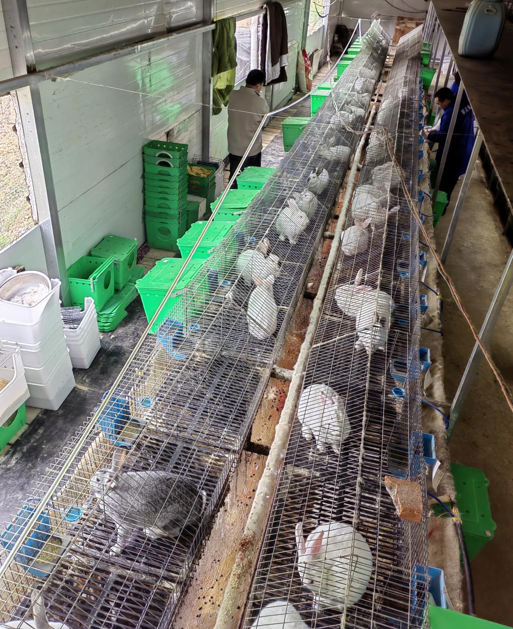 “兔子繁殖非常快,生长期也短,平均一只母兔1年能繁殖7窝小兔,每窝有8只至10只小兔。”农场负责人丁健刚正忙着查看母兔的妊娠情况,并在笼子前的小卡片上仔细做着记录。