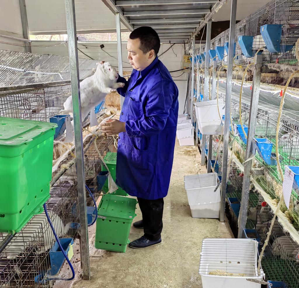 丁健刚正在查看母兔的妊娠情况