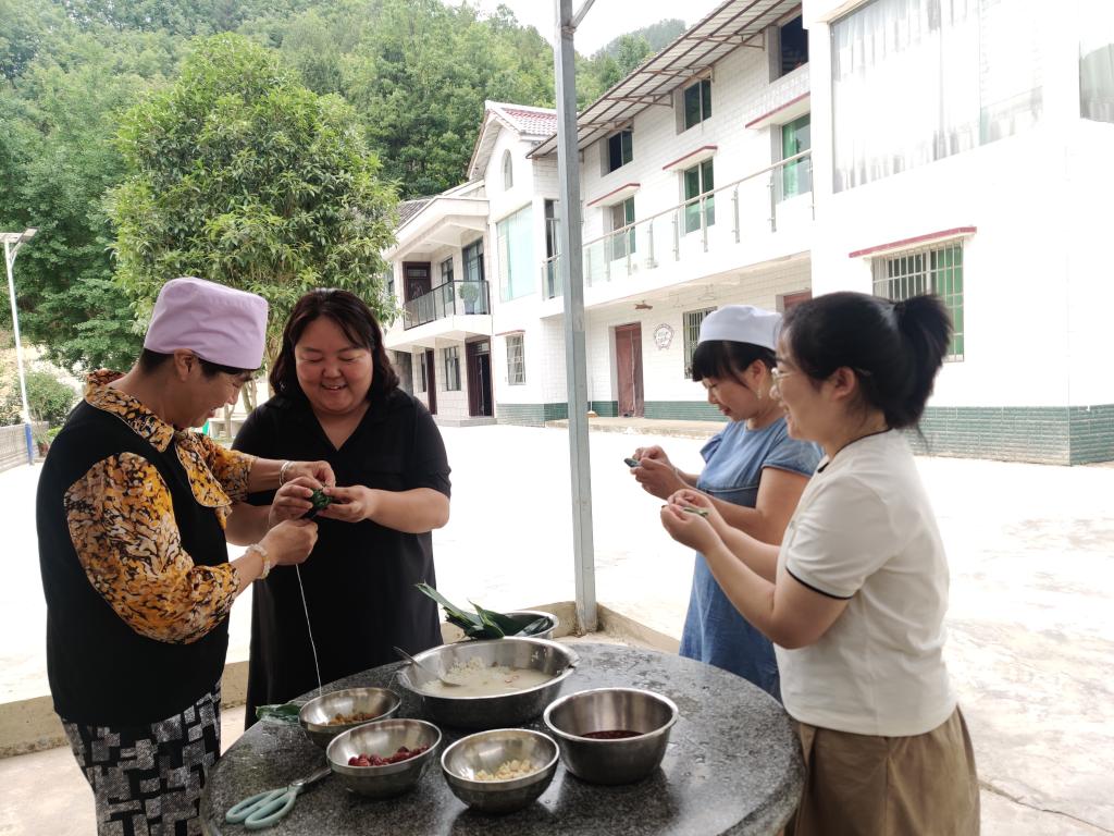 折粽叶、装糯米、放馅料、压实、扎绳……在一双双巧手之下,零散的原材料变成了一个个圆滚滚惹人爱的粽子,大家相互帮助、相互配合、相互学习,现场气氛温馨和谐,在互帮互助的过程中,回汉两族群众感情愈发融洽,小小粽子传递着浓浓的民族团结情。