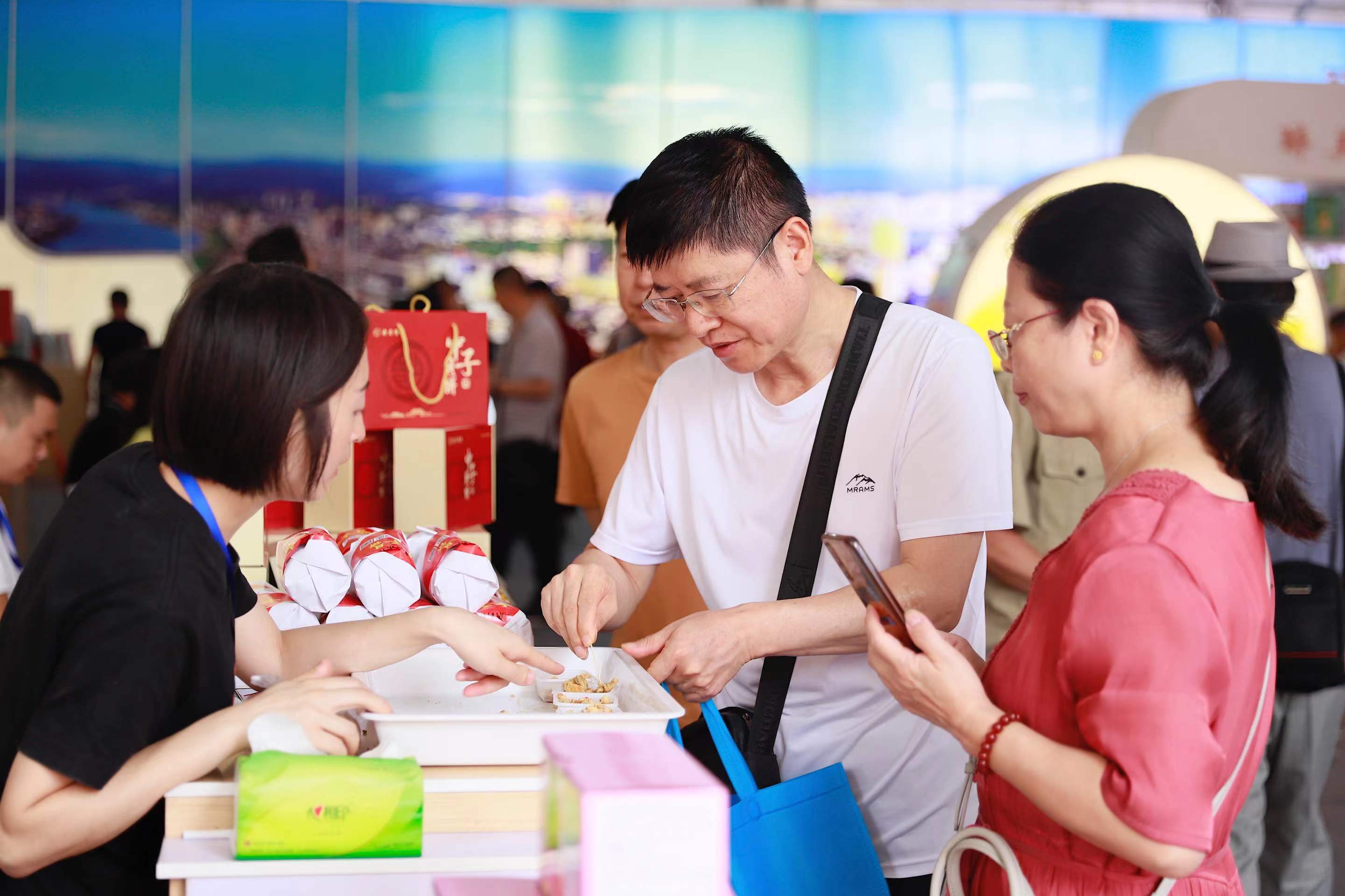 记着看到,位于广元市文化艺术中心广场的各大展区游客如织,特色产品琳琅满目。在朝天展区里,工作人员忙着介绍朝天特色产品,吸引了不少人。“中子月饼真好吃,价格又实惠,我打算买一些送给亲朋好友,让他们都尝尝。”来自甘肃的游客向秋云听了介绍后,品尝了一口,满是喜悦地购买了20斤中子月饼。