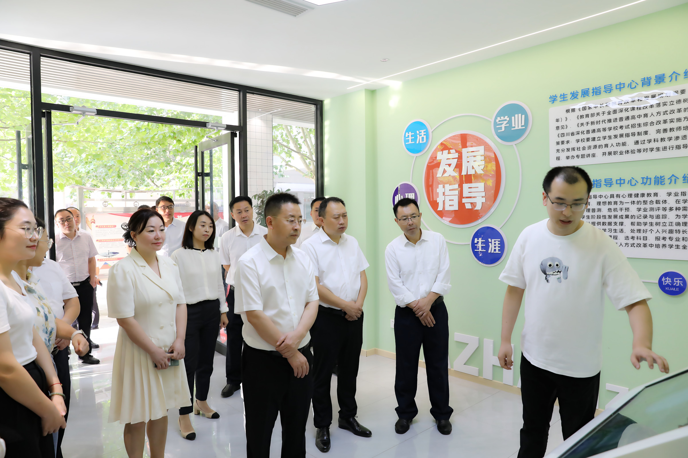 区领导王国章、杨治国、刘飘,区级相关部门主要(常务)负责人,朝天镇主要负责人,区教科局班子成员,部分校(园)长代表,部分优秀教师代表,杭州市滨江区支教教师,朝中校地合作基地班、朝中毕业班教师代表参加调研或座谈会。