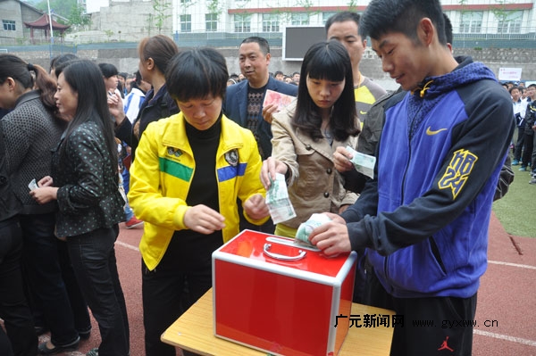 图为朝天之江中学教师在捐款