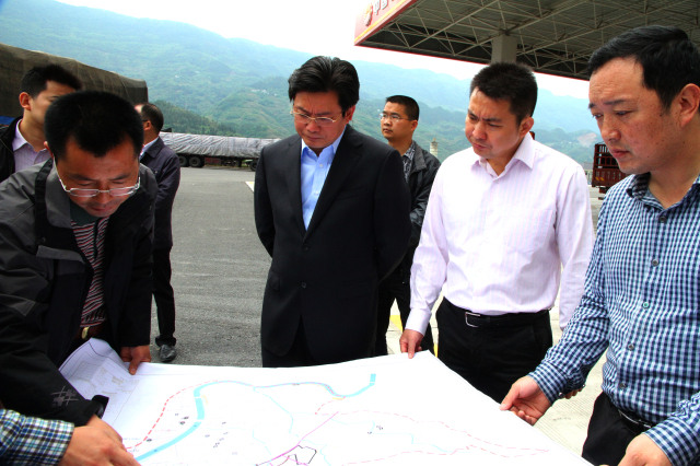 在中子服务区,蔡邦银详细了解项目建设进度。蔡邦银要求,施工单位要科学优化施工方案,加大与相关部门、乡镇沟通协调力度,切实加快项目建设进度,确保服务区于6月底全面建成并投入使用。