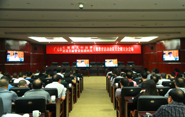 本网讯(杨春恩)近日,省委决定,从5月起,集中两个月左右时间,在全省广泛开展“实现伟大中国梦、建设美丽繁荣和谐四川”主题教育活动。12日下午,我市召开市、县区、乡镇三级广播电视动员大会,传达贯彻省委广泛开展“实现伟大中国梦、建设美丽繁荣和谐四川”主题教育活动的决策部署,组织动员全市广大干部群众积极投入这次主题教育活动,进一步坚定中国道路、弘扬中国精神、凝聚中国力量,为实现伟大“中国梦”、建设“美丽广元 幸福家园”而努力奋斗。