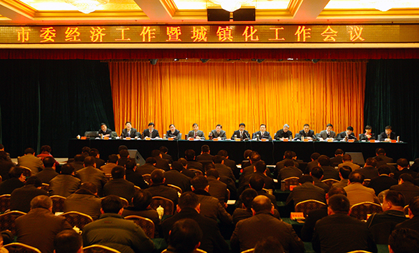 9至10日,市委经济工作暨城镇化工作会议举行,图为会议现场。