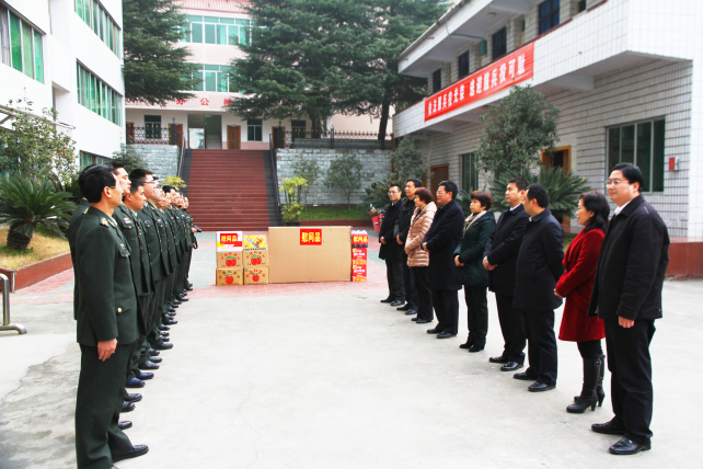 在区人武部、驻朝某部队、消防大队、交警大队慰问时,蔡邦银、伏玉琼等四大班子领导一行与全体驻朝官兵、消防官兵和公安干警一一握手,称赞他们是特别能吃苦、特别能战斗的队伍。希望大家牢记宗旨、不辱使命,进一步加强军政军民团结,继续发扬优良作风,一如既往地为我区经济社会发展保驾护航,为构建平安和谐朝天作出新的更大的贡献。