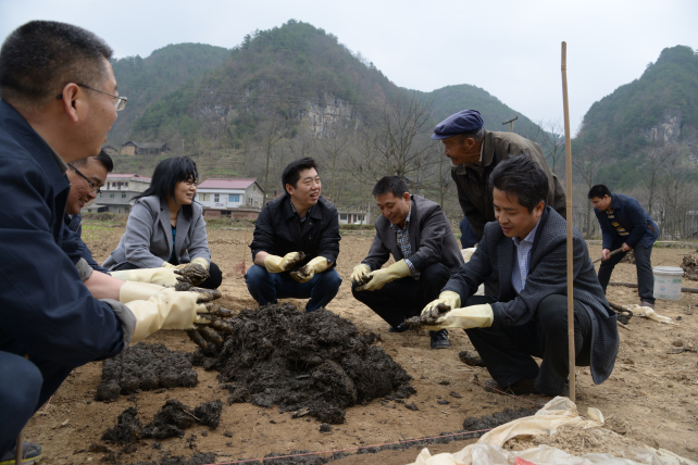 “老人家,你给我们指导指导,看看捏的要得不。”“你们捏的粪团比我这老汉捏的好多了。”9日下午1点过,大家趁天没再下雨,立即来到吉庆村四组的田间地头,和村民们拌起农家肥、捏起粪团。“你们这么远还来帮我们搞生产,真是太感谢你们了。”一大片地里,大家三四人一组,围住臭烘烘的粪堆忙开了,顿时,寂静的地里传来了欢声笑语。