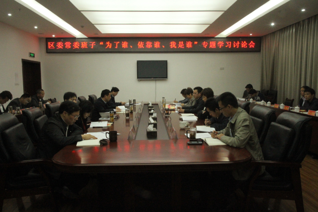 本网讯(谢翀)5月5日晚,区委书记、区委党的群众路线教育实践活动领导小组组长蔡邦银主持召开区委常委班子“为了谁、依靠谁、我是谁”专题学习讨论会。蔡邦银强调,全区党员干部要牢固树立为了群众、服务群众的宗旨意识,始终坚持从群众中来、到群众中去的工作方法,坚决站稳扎根群众、造福群众的根本立场,把人民群众满意作为检验工作的第一标准。区委副书记、区长伏玉琼,区人大常委会主任梁黎,区政协主席、区委常委、区委政法委书记张晓春,区委副书记、区委党的群众路线教育实践活动领导小组副组长罗凌云等领导参加会议。