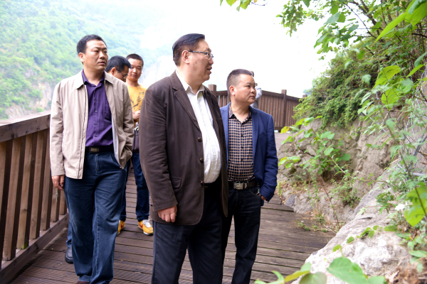 蜀风广场、诗词长廊、古栈道、演武场……穿行在明月峡景区,壁立千仞的胜景、巧夺天工的栈道深深吸引着大家。在剑门蜀道上唯一一个以千年蜀道历史文化变迁为主题的高品质陈列馆——中国蜀道文化陈列馆中,高洪波先生一行通过实物、文字、图片、多媒体等展示素材,详细了解发生在剑门蜀道的重大历史事件、重要历史人物和文化遗存。厚重、深沉的历史文化深深震撼着高洪波先生,他高度评价说,“明月峡有景观、还有故事、更有源远流长的历史,步入明月峡,就仿佛步入了艺术的殿堂。最令人惊叹的是古今六道集于一峡,实乃国内外之罕见,绝对是一个奇迹。”