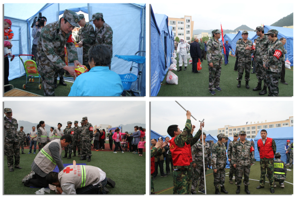 一声令下,应急民兵、共产党员突击队队员、青年志愿者、红十字志愿者赶赴救援场地搭建帐篷,设立避难场所,安置灾民,分发救灾物资,开展心理疏导;电力抢险队员架设临时供电线路,提供紧急电源,保障供电;电信、移动、联通应急通讯队伍及时恢复灾区通讯,设立“报平安”便民服务点;设立医疗救治点,组织医护人员开展医疗救治;防疫人员对应急避难场所、帐篷周边开展消杀灭等防疫应急处置……