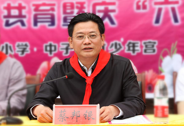 “今天你们是天真烂漫的红领巾,明天将成为现代化建设的生力军。你们是幸运的一代,更是肩负重任的一代。”蔡邦银寄语全区少年儿童: 要从小志存高远,树立远大理想,争当有抱负、有担当的好儿童;要弘扬传统品德,培养优良品格,争当与人为善、明礼诚信的小模范;要学好各门功课,苦修圆梦本领,争当勤奋学习、勇于创造的小标兵;要锻炼强健体魄,磨练坚韧意志,争当吃苦耐劳、心诚志坚的接班人。