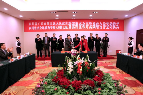 2月24日,朝天区人民政府与四川省冶金地质勘查局六〇四大队签订资源勘查和开发战略合作协议。合作协议的签订,对加快全区资源勘查开发步伐,促进资源转化战略,推动产业升级,提高资源综合利用水平将产生积极作用。区委书记蔡邦银出席签字仪式并致辞,区委副书记、区人民政府区长伏玉琼与四川省冶金地质勘查局六〇四大队队长签订《资源勘查和开发战略合作框架协议》,区人大常委会主任梁黎,区政协主席贾光升出席签字仪式,区委副书记卢达昌主持签字仪式,区委常委、常务副区长徐骁宣读了《关于成立资源勘查和开发战略合作工作协调领导小组的通知》。