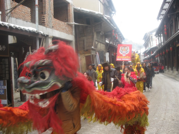 雪降吉祥春报喜,龙开财门狮送福。展现了旅游重镇“传承历史文化、挖掘民俗文化、发展旅游文化”的文化主题,敲开了曾家镇和谐美好的新一年。