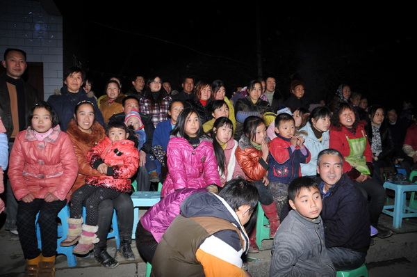 这是一台很别致的春晚,没有绚丽的灯光,也没有华丽的服饰,舞台是用红砖磊起来、用红地毯铺起来的大戏台,座落在所农家小院里。凛冽的寒风中,台前的空地在演出前的一小时就被村民"瓜分"了。当晚7点钟,在伴随着《开门红”的舞曲,村里的两位青年人走上舞台,用当地的“普通话”有板有眼地主持起晚会。接下来,充满浓郁地方色彩的节目,好戏连台:经过改编的《井冈山的太阳》,歌伴舞淋漓尽致地再现村民们的幸福生活,令人赞不绝口;扭动腰肢,,村里女性的让台下人乐得合不拢嘴;歌伴舞 《好日子》真真切切唱出村民的心声,观众拍手叫好;扮相滑稽,语言幽默的小品《卖土豆》,更是赢得热烈掌声……