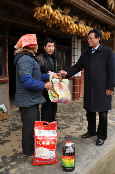 下午2点多,蔡邦银一行连午饭都没有顾得上吃,又赶往困难群众贺应贤家里,把慰问金、慰问品亲自递到他的手里,关切问他:“身体怎么样?家里冷不冷?粮食够吃吗?过年的东西准备好了吗?”看到区领导跑这么远来慰问,还带来了这么多慰问品,70多岁的贺应贤难以控制自己的感情,紧紧地握着书记的手久久不愿松开。他激动地说:“党和政府对我太好了,帮我盖起了房子,让我享受了低保,我们全家人将永远记住共产党的恩情。”随后,蔡邦银又慰问了几户困难群众,将一个个“红包”、一袋袋大米、一桶桶食油,送到了困难群众家中,将区委政府的关怀传送到他们心中。他还叮嘱随行的乡村主要负责人要进一步关心困难群众生活,确保他们安全越冬、愉快过年。在新年到来前夕,在这个飘雪即来的寒冬,在每个群众心里,燃起了冬日里的一把火,温暖了整个鲤鱼村。