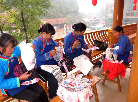 麻柳刺绣作为国家级非物质文化遗产,是朝天区民俗文化的代表。农闲时节,当地妇女常常在一起交流麻柳刺绣的技艺。赵培俊 摄