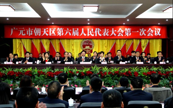 蔡邦银强调,今后的五年,是我区贯彻落实区第六次党代会各项部署,全面实施“十二五”发展规划和建设全面小康的关键时期。10月上旬召开的区第六次党代会,确立了“加快振兴发展、推进全面小康,努力建设生态文明繁荣和谐新朝天”的发展定位,作出了实施“四化联动、文化推动、民生带动、创新驱动”战略和构建“三中心三基地”(基本建成广元城市北部副中心、川陕结合部物资集散中心、川陕结合部区域文化中心,基本建成全国知名的新型能源和新型建材生产基地、全国知名的绿色农特产品生产加工和出口基地、全国知名的蜀道文化旅游和生态养生基地)的总体部署,明确了“快发展、争跨越、求升位”的工作主基调,提出了今后五年“把朝天建设成为川陕结合部经济发展、文化繁荣、生态优良、人民幸福的和谐之区”的奋斗目标。本次人代会紧紧围绕区第六次党代会的战略决策,对今后五年全区经济社会发展进一步作出了具体安排,描绘了朝天未来发展的美好蓝图。实现区第六次党代会和本次人代会确定的各项目标任务、美好蓝图,需要全区各级党政组织、广大干部群众、人民代表和社会各界人士的共同努力。
