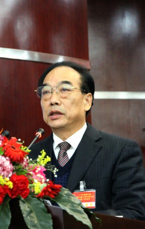 蔡邦银、伏玉琼、仇群成、贾光升、梁黎、王长华、张浩广、王祝远、田新华在主席台前排就座。