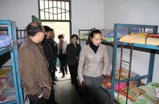 伏玉琼在两河口乡小学察看学生寝室