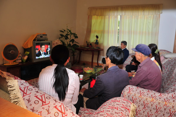 盛会进行中,热烈的情绪也不断升温。看着电视直播, 70多岁的张厚乾老人激动地说,近年来,在中央和省委省政府的大力支持下,在市区党委政府的坚强领导下,岳家村胜利完成了灾后重建,村容村貌和村民的生活水平发生了巨大变化,在脱贫致富的道路上取得了很大成绩,困扰多年老大难问题一个个都得到了解决和改善。“我们家400多株核桃树,有150多株挂果。”面对镜头,张厚乾老人再饰不住内心的喜悦,“今年,我家核桃卖了近万元,加上生猪养殖,家庭收入比过去翻了两翻多,相信这次党代会的召开,将推动更多的民生问题得到更好的解决。”