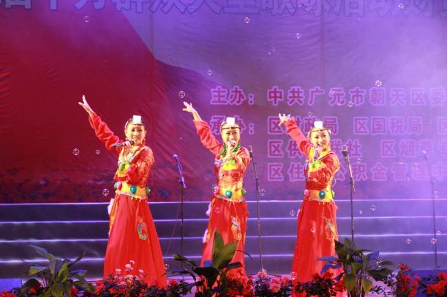 大合唱《我们走在大路上》展现了朝天人民在发展的道路上自加压力、奋勇争先的昂扬斗志;舞蹈《幸福像花儿一样》表达了淳朴的朝天人在党的领导下走上幸福路的喜悦、感激之情;一首地道的男声独唱《明月峡》更是唱出了财贸系统干部职工的质朴和昂扬的斗志,将晚会推向了高潮。近年来,我区财贸系统各单位秉承“依法理财稳增长、优化结构促发展”的理念,借动力、聚合力,为朝天经济社会发展做出了积极的贡献。