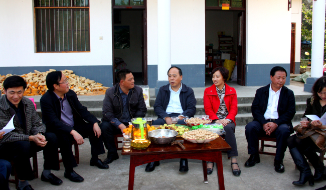 中子镇枣树村是省经信委“挂包帮”联系点,这里的群众生产生活情况如何,“挂包帮”取得了怎样的变化……省经信委领导一直牵挂于心。沿着新修的水泥村道,张玉山来到枣树村一组村民郭明生的家中。“现在的生活怎么样?”张玉山关切地询问,“现在生活好多了哦。收入增加了,出行方便了,吃水的问题解决了,村里发展畜牧养殖,养了猪和鸡,家家户户都有产业。”郭明生高兴的回答。参观了郭明生刚刚修建的新房,察看了他家的生活设施,张玉山很高兴,对在场的乡镇干部叮嘱道,现在人居环境好了,吃水、行路的问题解决了,关键要培育持续增收的长效产业,为枣树村群众提供持续的增收致富途径。