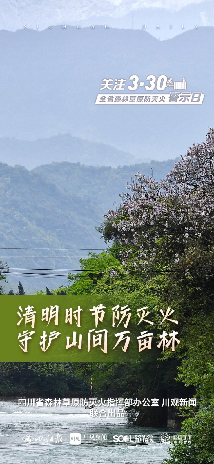 今天是我省第二个“全省森林草原防灭火警示日”。四川省森林草原防灭火指挥部联合川观新闻推出一组海报,关注“3·30”全省森林草原防灭火警示日。