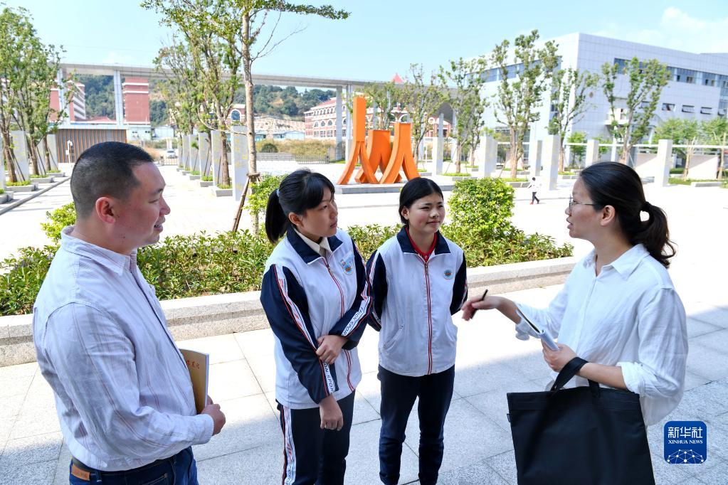 2019年10月24日,福建省福州市闽侯县委巡察二组工作人员(右一)在闽侯县职业中专学校了解中职补助资金发放情况。新华社记者 林善传 摄