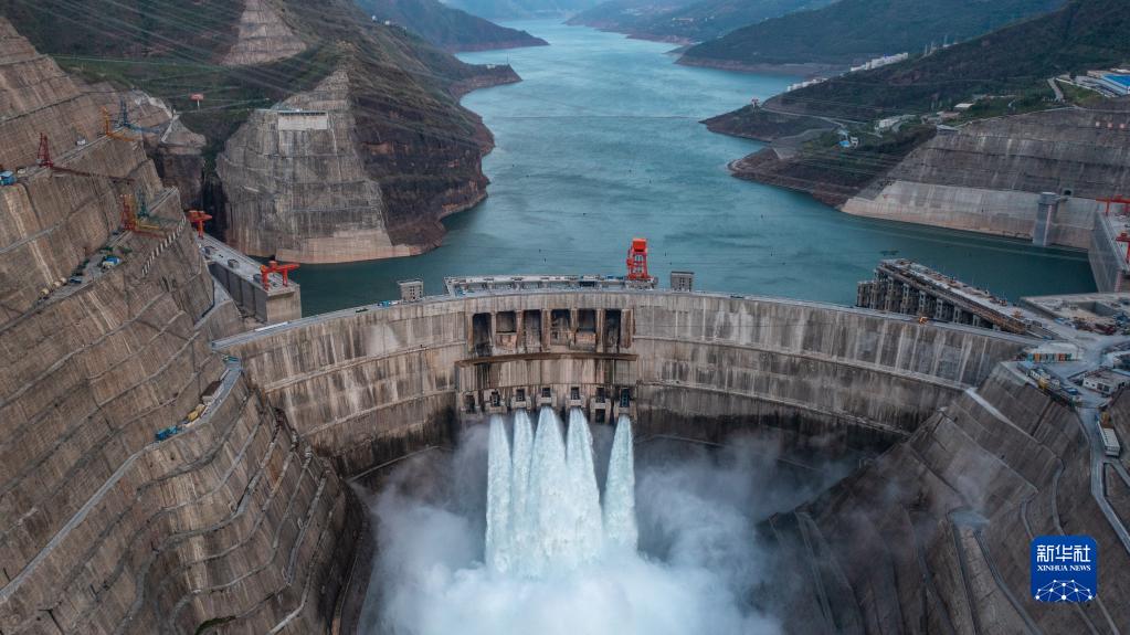这是白鹤滩水电站(无人机照片,2022年5月29日摄)。新华社记者 胡超 摄