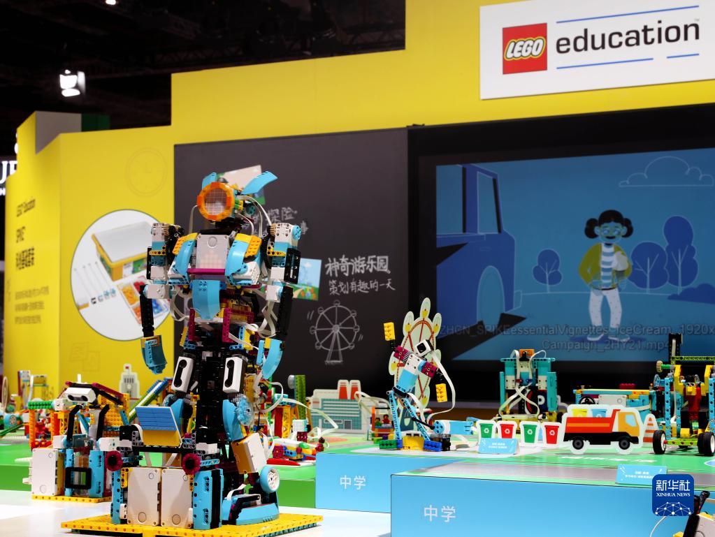 第四届中国国际进口博览会乐高展台(2021年11月5日摄)。新华社记者 刘颖 摄