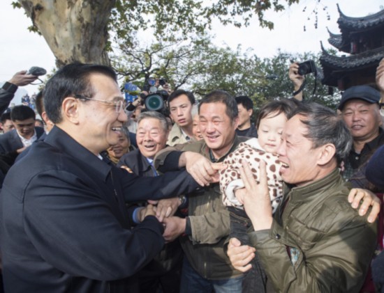 2014年11月21日,李克强总理在京杭大运河杭州拱宸桥段考察。看到运河两岸古典与现代、自然与人文交融的场景,总理说,运河是人类智慧的创造,今天的大运河,则是我们对历史遗产的再创造。