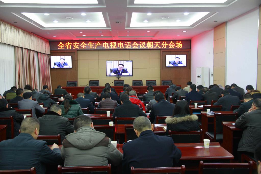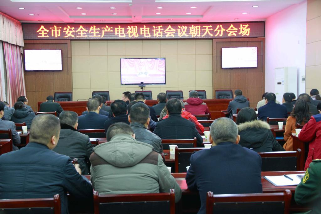 区安委会成员单位负责人和相关部门、乡镇、企业负责人在朝天分会场参加会议。