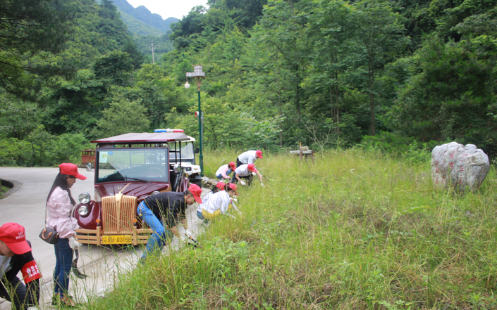此次活动主要对景区各岗位环境卫生及公路沿线的垃圾杂草进行了全面清理整治。活动中,党员们纷纷手拿笤帚、抹布、拖把、镰刀等工具,认真铲除杂草、捡拾绿化带内的废弃物,为游客打造干净、整洁的旅游环境,以实际行动实践共产党员的先进性和纯洁性。