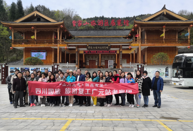四川国旅旅游复工广元站考察团在展览馆合影留恋