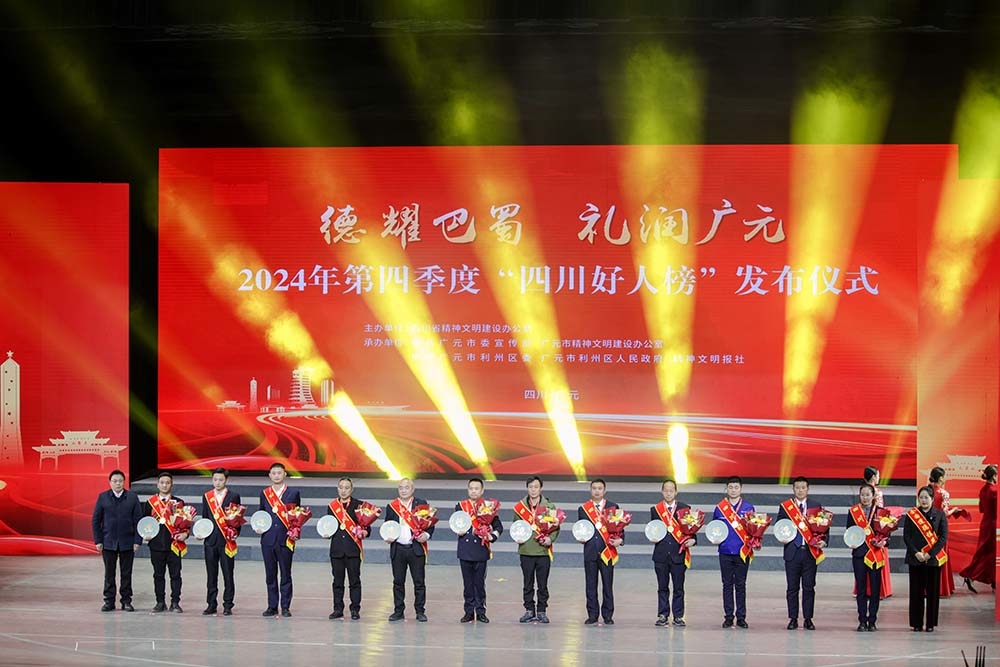 广元新闻网讯(郭桂花 广元市融媒体中心记者 管寒冰/文 刘慷/图)一个好人就是一枚火种,一个模范就是一面旗帜。1月10日,2024年第四季度“四川好人榜”发布仪式在广元大剧院举行,来自全省的41名身边好人荣登2024年第四季度“四川好人榜”。