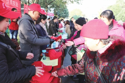 12月4日上午,在利州广场市司法局的宣传台前,市民主动上前索取法制宣传资料 谭超 摄