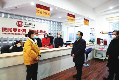 王菲来到昭化区元坝镇京兆路社区,暗访检查疫情防控排查工作、联防联控机制运行等情况。记者赵恒摄