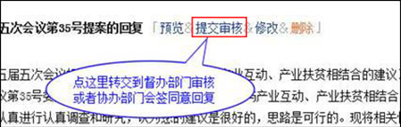 如果是多部门联合办理,点击提交审核就会失败并弹出提示,回复落款处显示协办未会签图章,通知协办部门上网查看回复并点击会签。协办部门可以对回复内容进行修改。