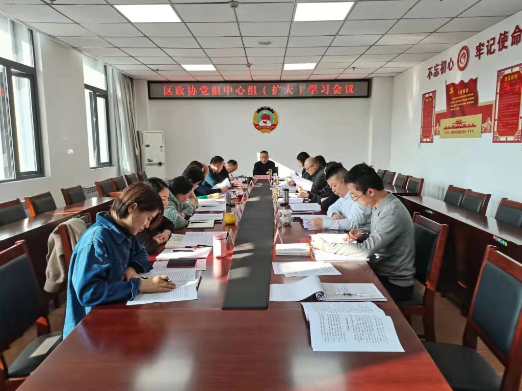 11月24日,区政协主席、党组书记饶和刚主持召开区政协党组中心组(扩大)学习会议,传达学习党的十九届六中全会精神,研究区政协贯彻意见。区政协副主席赵清玲、柴松林、母建容、贾长城,秘书长王云中参加会议。