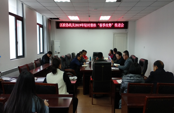 2月22日,区政协机关召开驻村帮扶"春季攻势"推进会,进一步细化安排梯子岩村、松广村战场脱贫摘帽迎省检工作,审定2019年度驻村帮扶巩固提升计划,明确2019年度驻村帮扶及"春季攻势"工作重点。区政协副主席付全宇出席会议。