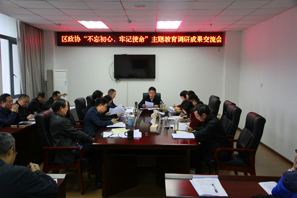 会议开展了“不忘初心、牢记使命”主题教育成果交流。会议指出,此次调研成果交流作为主题教育的规定动作,既是一次政治教育,也是一次工作能力和工作方法上的交流学习。区政协班子成员都结合课题实际,找准了问题症结,提出了行之有效的工作举措,达到了预期效果。