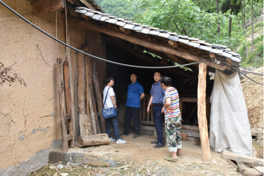 华昌桂、付全宇与青鹿村平困户交谈