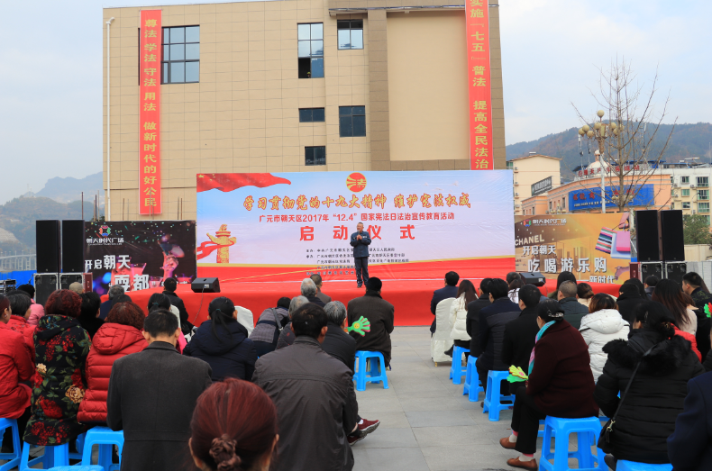“学习贯彻党的十九大精神,维护宪法权威。”12月4日上午,由区依法治区办联合区委宣传部、区文广新局、区司法局、朝天镇党委政府举办的“朝天区2017年‘12.4’国家宪法日法治宣传教育活动”正式启动。区委常委、政法委书记李绍兵出席仪式并宣布活动开幕。