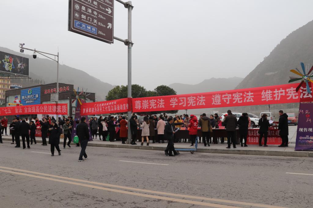 活动现场,区公安分局、区法制办、区人社局等45个单位组成宣传队伍,通过设立宣传点、发放宣传资料、摆设普法展板、开展法律咨询、悬挂宣传标语等多种形式,突出宣传宪法、习近平全面依法治国新理念新思想新战略、中国特色法律体系、本单位职能所涉及和维护社会稳定相关的法律法规,耐心讲解群众关心的民生方面法律知识,提升广大群众对所需求的法律知识的了解知晓程度,得到在场群众的一致好评。同时,朝天电视台和城区户外LED显示屏滚动播放宪法宣传内容,营造了良好的宣传氛围。