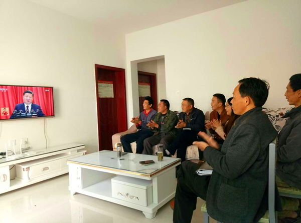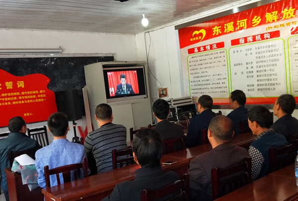 东溪河解放村干部群众收看收听十九大开幕盛况